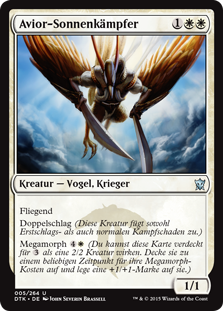 | Rules | Flying Double strike (This creature deals both first-strike and regular combat damage.) Megamorph (You may cast this card face down as a 2/2 creature for . Turn it face up any time for its megamorph cost and put a +1/+1 counter on it.) |