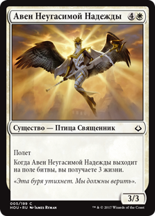 | Rules | Flying When Aven of Enduring Hope enters the battlefield, you gain 3 life. |