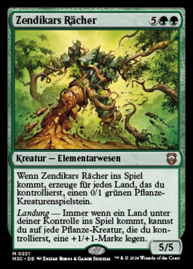 | Rules | When Avenger of Zendikar enters the battlefield, create a 0/1 green Plant creature token for each land you control. Landfall — Whenever a land enters the battlefield under your control, you may put a +1/+1 counter on each Plant creature you control. |