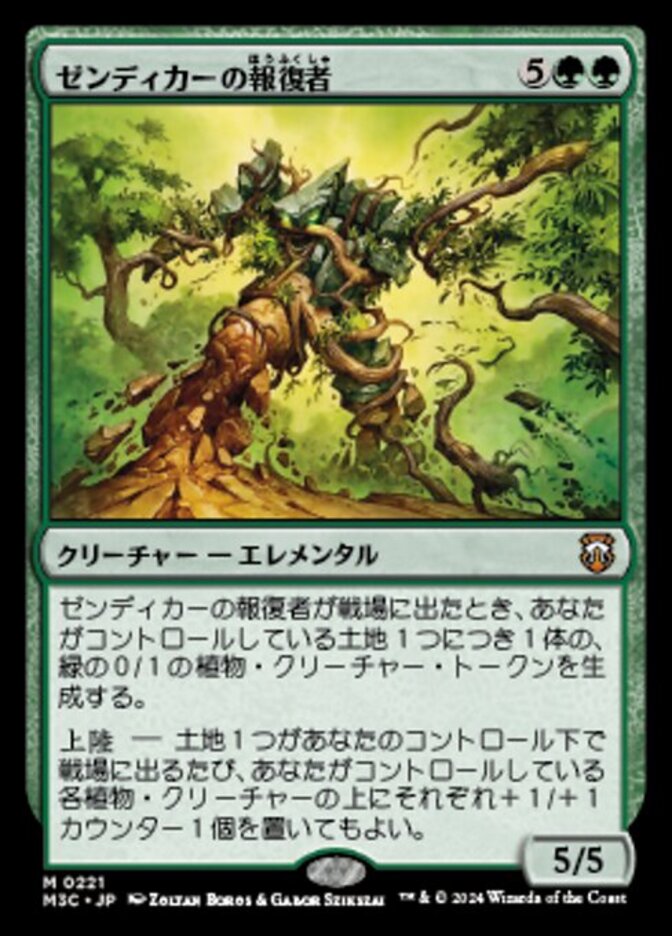 | Rules | When Avenger of Zendikar enters the battlefield, create a 0/1 green Plant creature token for each land you control. Landfall — Whenever a land enters the battlefield under your control, you may put a +1/+1 counter on each Plant creature you control. |
