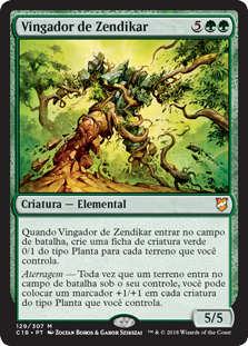 | Rules | When Avenger of Zendikar enters the battlefield, create a 0/1 green Plant creature token for each land you control. Landfall — Whenever a land enters the battlefield under your control, you may put a +1/+1 counter on each Plant creature you control. |