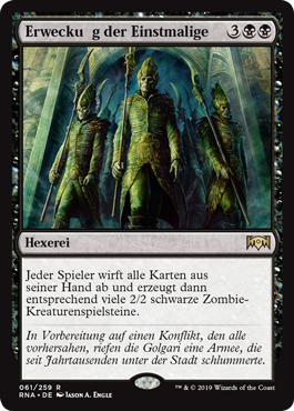 | Rules | Each player discards all the cards in their hand, then creates that many 2/2 black Zombie creature tokens. |