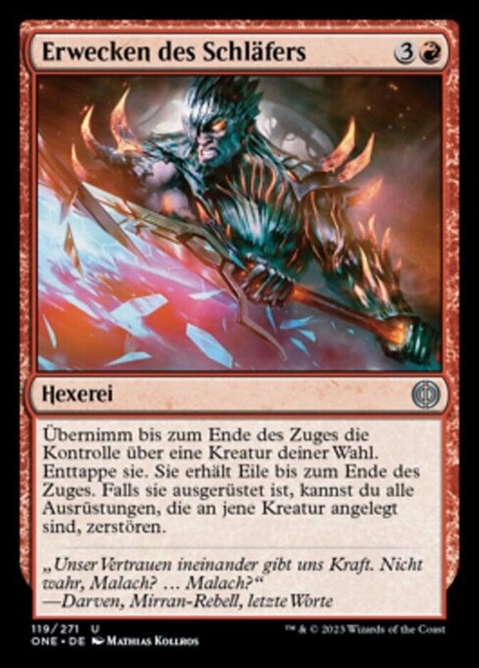 | Rules | Gain control of target creature until end of turn. Untap that creature. It gains haste until end of turn. If it's equipped, you may destroy all Equipment attached to that creature. |