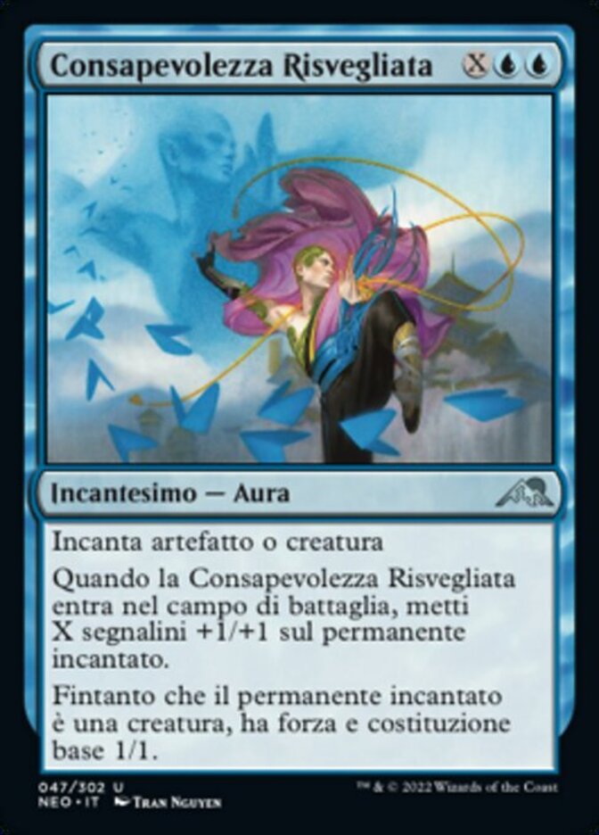 | Rules | Enchant artifact or creature When Awakened Awareness enters the battlefield, put X +1/+1 counters on enchanted permanent. As long as enchanted permanent is a creature, it has base power and toughness 1/1. |