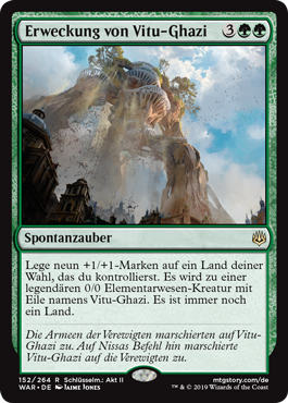 | Rules | Put nine +1/+1 counters on target land you control. It becomes a legendary 0/0 Elemental creature with haste named Vitu-Ghazi. It's still a land. |