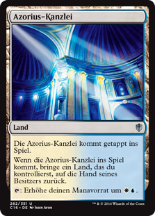 | Rules | Azorius Chancery enters the battlefield tapped. When Azorius Chancery enters the battlefield, return a land you control to its owner's hand. : Add . |