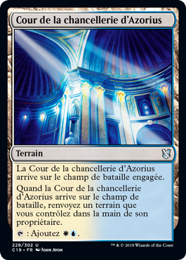| Rules | Azorius Chancery enters the battlefield tapped. When Azorius Chancery enters the battlefield, return a land you control to its owner's hand. : Add . |