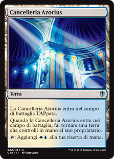 | Rules | Azorius Chancery enters the battlefield tapped. When Azorius Chancery enters the battlefield, return a land you control to its owner's hand. : Add . |