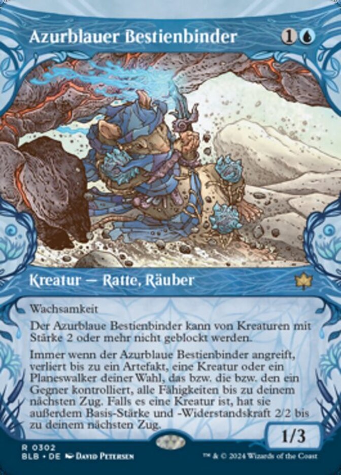 | Rules | Vigilance Azure Beastbinder can't be blocked by creatures with power 2 or greater. Whenever Azure Beastbinder attacks, up to one target artifact, creature, or planeswalker an opponent controls loses all abilities until your next turn. If it's a creature, it also has base power and toughness 2/2 until your next turn. |
