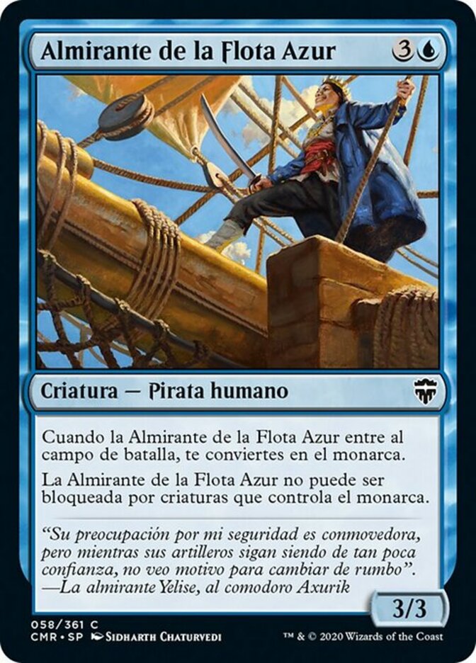 | Rules | When Azure Fleet Admiral enters the battlefield, you become the monarch. Azure Fleet Admiral can't be blocked by creatures the monarch controls. |