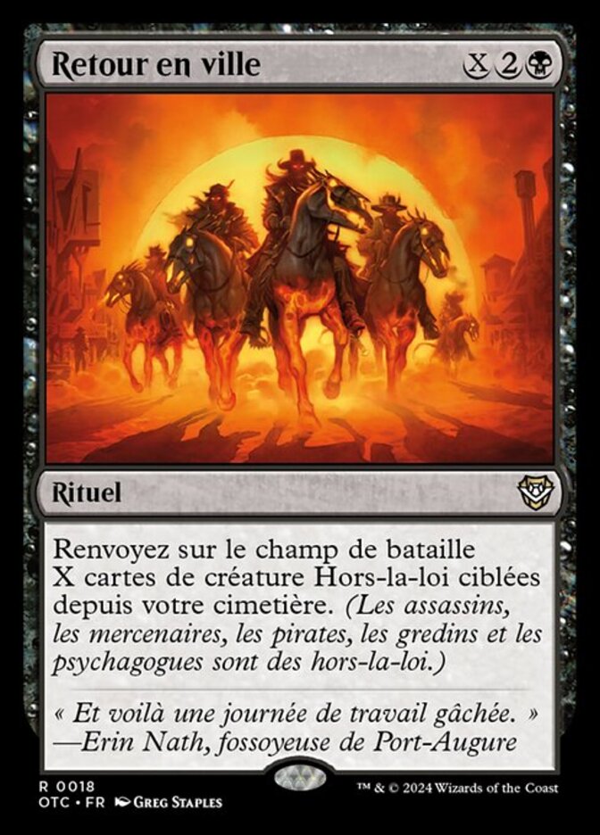 | Rules | Return X target outlaw creature cards from your graveyard to the battlefield. (Assassins, Mercenaries, Pirates, Rogues, and Warlocks are outlaws.) |
