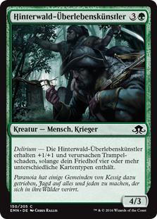 | Rules | Delirium — Backwoods Survivalists gets +1/+1 and has trample as long as there are four or more card types among cards in your graveyard. |