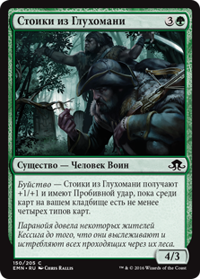 | Rules | Delirium — Backwoods Survivalists gets +1/+1 and has trample as long as there are four or more card types among cards in your graveyard. |