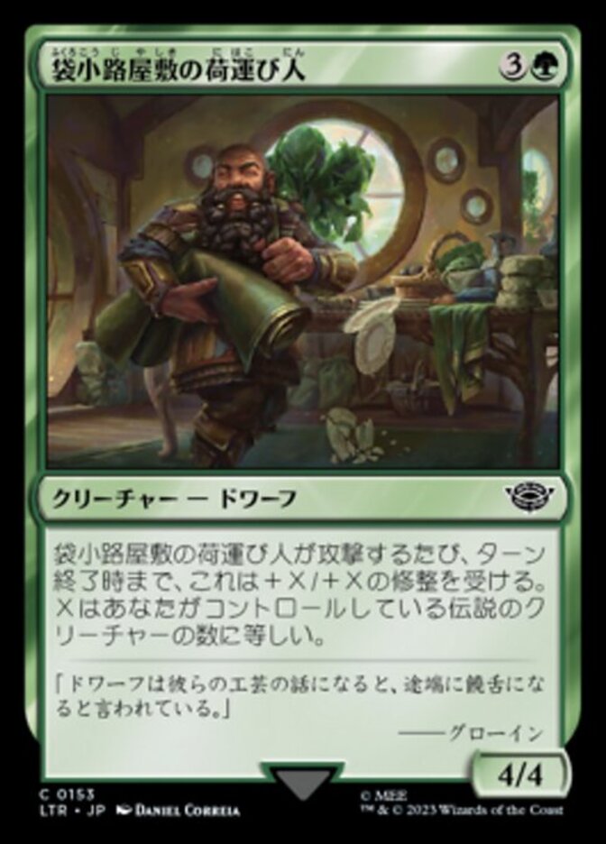 | Rules | Whenever Bag End Porter attacks, it gets +X/+X until end of turn, where X is the number of legendary creatures you control. |