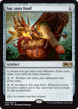 | Rules | Whenever you discard a card, exile that card from your graveyard. , : Draw a card, then discard a card. , , Sacrifice Bag of Holding: Return all cards exiled with Bag of Holding to their owner's hand. |