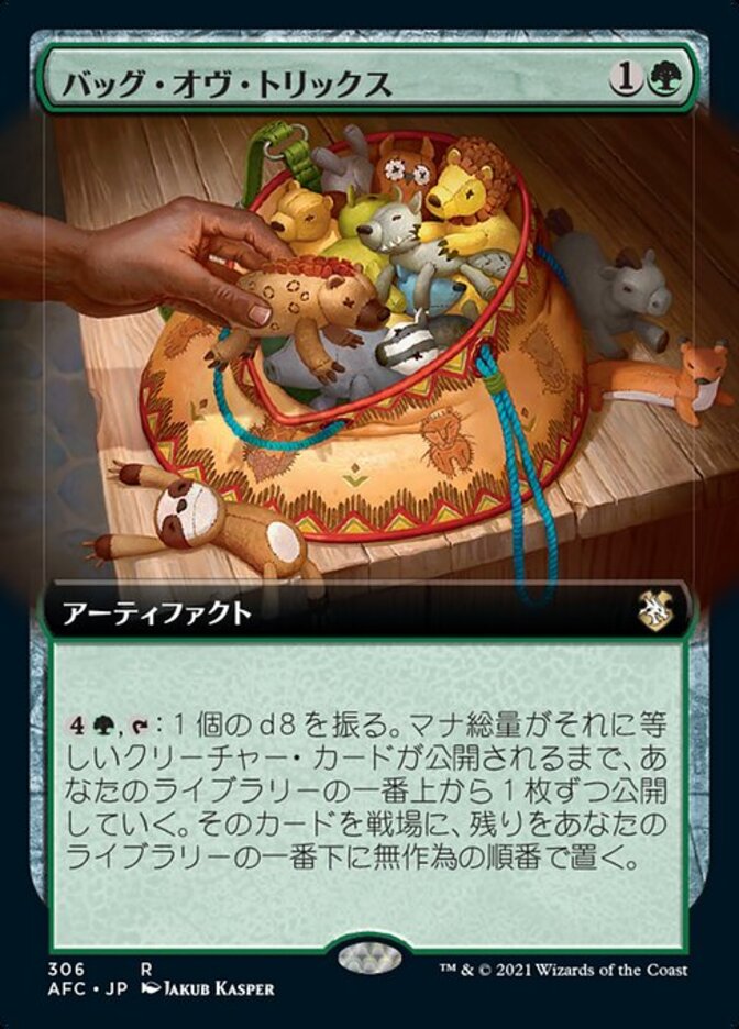 | Rules | , : Roll a d8. Reveal cards from the top of your library until you reveal a creature card with mana value equal to the result. Put that card onto the battlefield and the rest on the bottom of your library in a random order. |