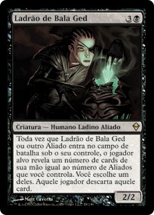 | Rules | Whenever Bala Ged Thief or another Ally enters the battlefield under your control, target player reveals a number of cards from their hand equal to the number of Allies you control. You choose one of them. That player discards that card. |