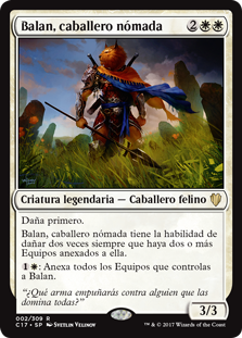 | Rules | First strike Balan, Wandering Knight has double strike as long as two or more Equipment are attached to it. : Attach all Equipment you control to Balan. |