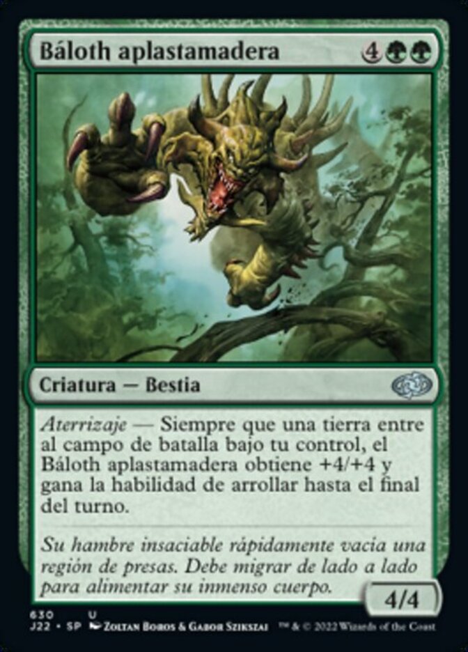 | Rules | Landfall — Whenever a land enters the battlefield under your control, Baloth Woodcrasher gets +4/+4 and gains trample until end of turn. |
