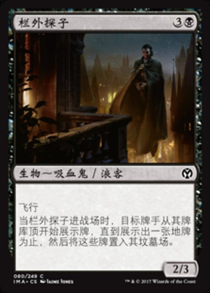 | Rules | Flying When Balustrade Spy enters the battlefield, target player reveals cards from the top of their library until they reveal a land card, then puts those cards into their graveyard. |