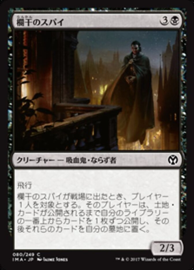 | Rules | Flying When Balustrade Spy enters the battlefield, target player reveals cards from the top of their library until they reveal a land card, then puts those cards into their graveyard. |
