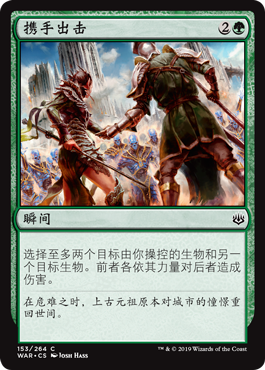 | Rules | Up to two target creatures you control each deal damage equal to their power to another target creature. |