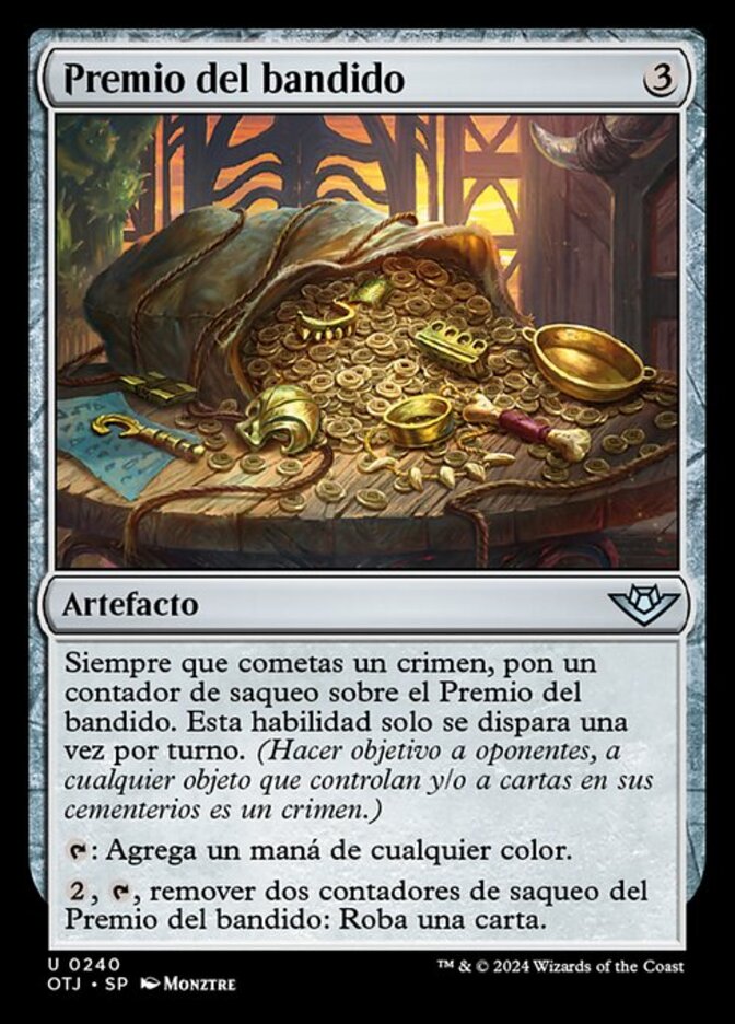 | Rules | Whenever you commit a crime, put a loot counter on Bandit's Haul. This ability triggers only once each turn. (Targeting opponents, anything they control, and/or cards in their graveyards is a crime.) : Add one mana of any color. , , Remove two loot counters from Bandit's Haul: Draw a card. |
