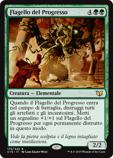 | Rules | When Bane of Progress enters the battlefield, destroy all artifacts and enchantments. Put a +1/+1 counter on Bane of Progress for each permanent destroyed this way. |