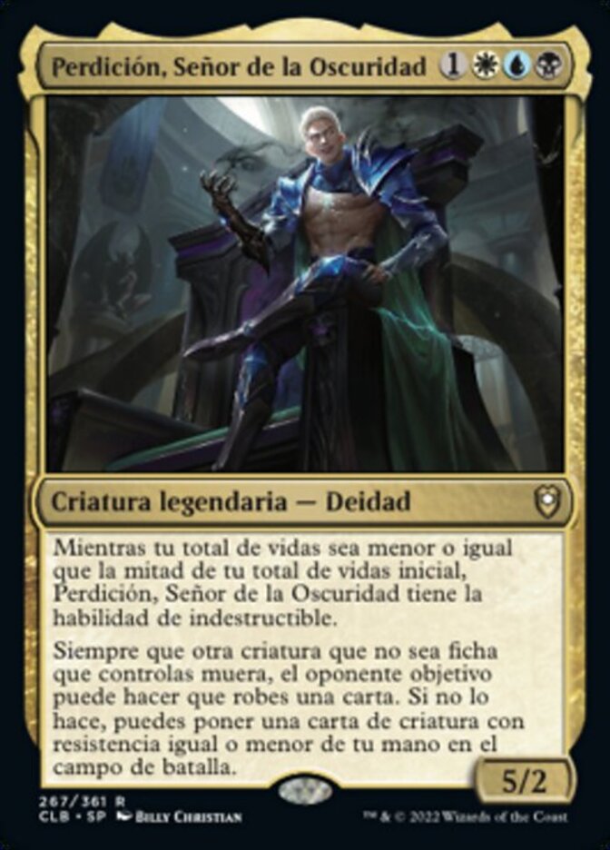 | Rules | As long as your life total is less than or equal to half your starting life total, Bane, Lord of Darkness has indestructible. Whenever another nontoken creature you control dies, target opponent may have you draw a card. If they don't, you may put a creature card with equal or lesser toughness from your hand onto the battlefield. |
