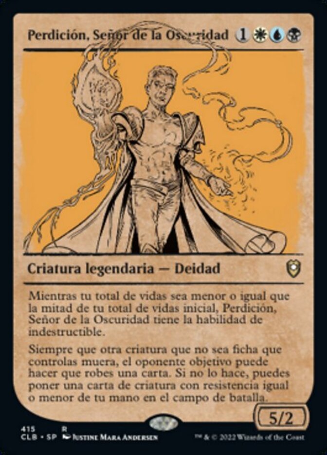 | Rules | As long as your life total is less than or equal to half your starting life total, Bane, Lord of Darkness has indestructible. Whenever another nontoken creature you control dies, target opponent may have you draw a card. If they don't, you may put a creature card with equal or lesser toughness from your hand onto the battlefield. |