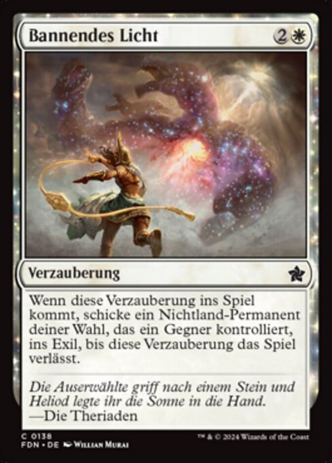 | Rules | When Banishing Light enters the battlefield, exile target nonland permanent an opponent controls until Banishing Light leaves the battlefield. |