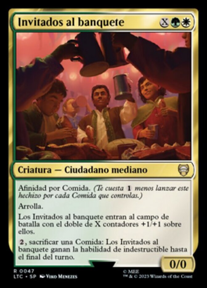 | Rules | Affinity for Food (This spell costs 1 less to cast for each Food you control.) Trample Banquet Guests enters the battlefield with twice X +1/+1 counters on it. , Sacrifice a Food: Banquet Guests gains indestructible until end of turn. |