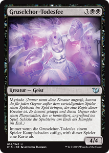 | Rules | Myriad (Whenever this creature attacks, for each opponent other than defending player, you may create a token that's a copy of this creature that's tapped and attacking that player or a planeswalker they control. Exile the tokens at end of combat.) Whenever Banshee of the Dread Choir deals combat damage to a player, that player discards a card. |