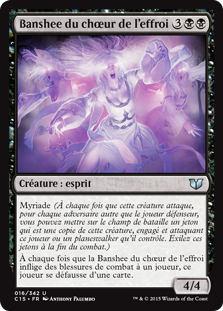 | Rules | Myriad (Whenever this creature attacks, for each opponent other than defending player, you may create a token that's a copy of this creature that's tapped and attacking that player or a planeswalker they control. Exile the tokens at end of combat.) Whenever Banshee of the Dread Choir deals combat damage to a player, that player discards a card. |