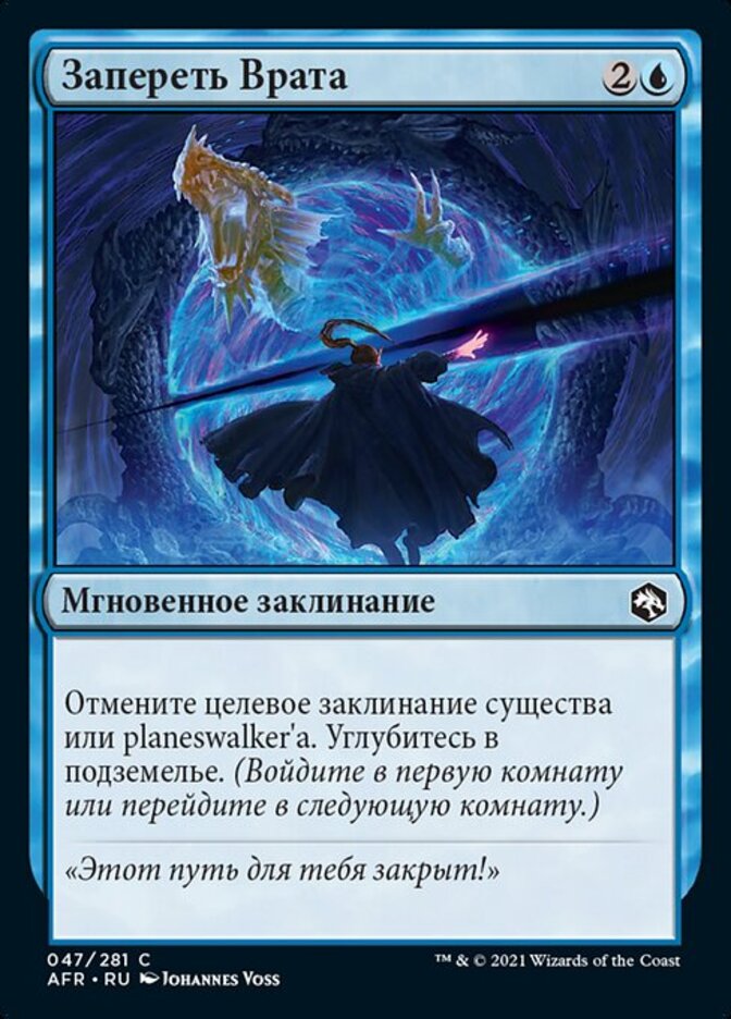 | Rules | Counter target creature or planeswalker spell. Venture into the dungeon. (Enter the first room or advance to the next room.) |