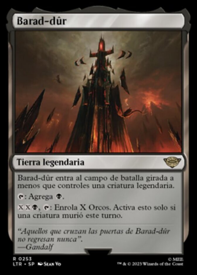 | Rules | Barad-dûr enters the battlefield tapped unless you control a legendary creature. : Add . , : Amass Orcs X. Activate only if a creature died this turn. |