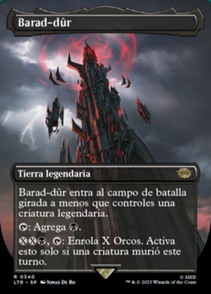 | Rules | Barad-dûr enters the battlefield tapped unless you control a legendary creature. : Add . , : Amass Orcs X. Activate only if a creature died this turn. |