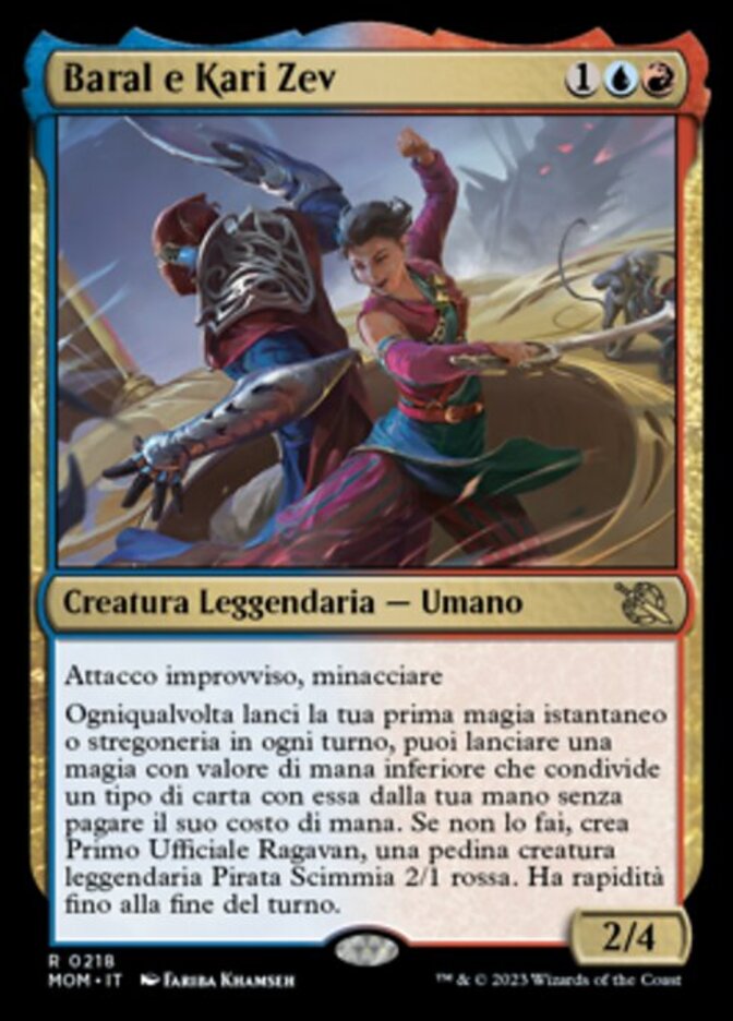 | Rules | First strike, menace Whenever you cast your first instant or sorcery spell each turn, you may cast a spell with lesser mana value that shares a card type with it from your hand without paying its mana cost. If you don't, create First Mate Ragavan, a legendary 2/1 red Monkey Pirate creature token. It gains haste until end of turn. |