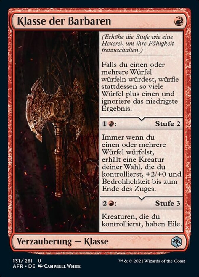 | Rules | (Gain the next level as a sorcery to add its ability.) If you would roll one or more dice, instead roll that many dice plus one and ignore the lowest roll. : Level 2 Whenever you roll one or more dice, target creature you control gets +2/+0 and gains menace until end of turn. : Level 3 Creatures you control have haste. |