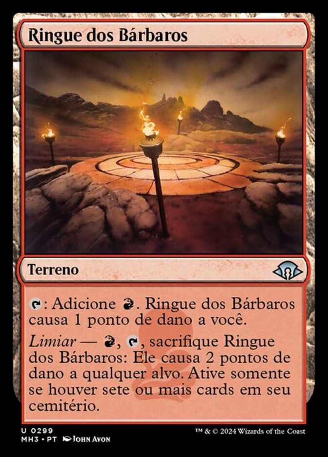 | Rules | : Add . Barbarian Ring deals 1 damage to you. Threshold — , , Sacrifice Barbarian Ring: It deals 2 damage to any target. Activate only if seven or more cards are in your graveyard. |
