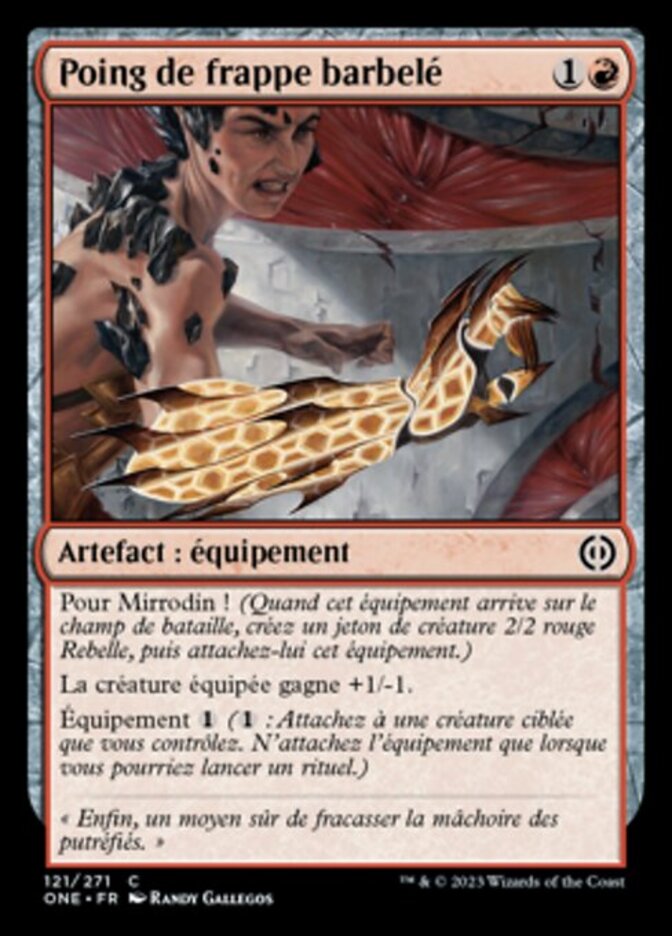 | Rules | For Mirrodin! (When this Equipment enters the battlefield, create a 2/2 red Rebel creature token, then attach this to it.) Equipped creature gets +1/-1. Equip (: Attach to target creature you control. Equip only as a sorcery.) |