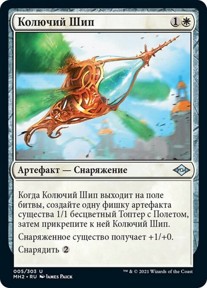 | Rules | When Barbed Spike enters the battlefield, create a 1/1 colorless Thopter artifact creature token with flying, then attach Barbed Spike to it. Equipped creature gets +1/+0. Equip |