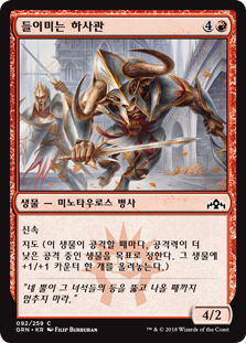 | Rules | Haste Mentor (Whenever this creature attacks, put a +1/+1 counter on target attacking creature with lesser power.) |