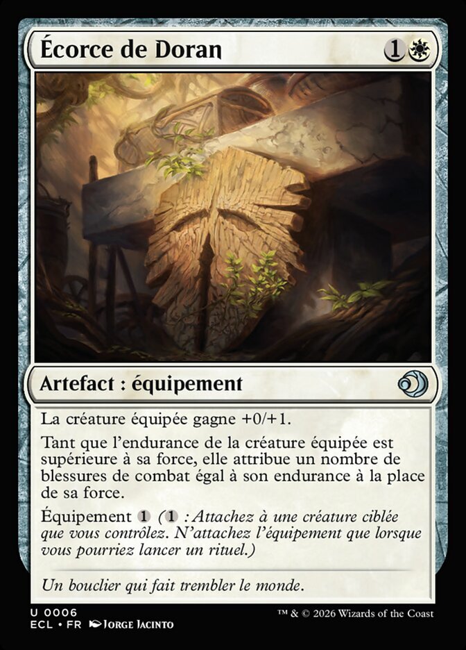 | Rules | Equipped creature gets +0/+1. As long as equipped creature's toughness is greater than its power, it assigns combat damage equal to its toughness rather than its power. Equip (: Attach to target creature you control. Equip only as a sorcery.) |