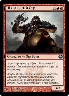 | Rules | , Sacrifice an artifact: Barrage Ogre deals 2 damage to any target. |