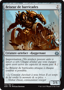 | Rules | Improvise (Your artifacts can help cast this spell. Each artifact you tap after you're done activating mana abilities pays for .) Barricade Breaker attacks each combat if able. |