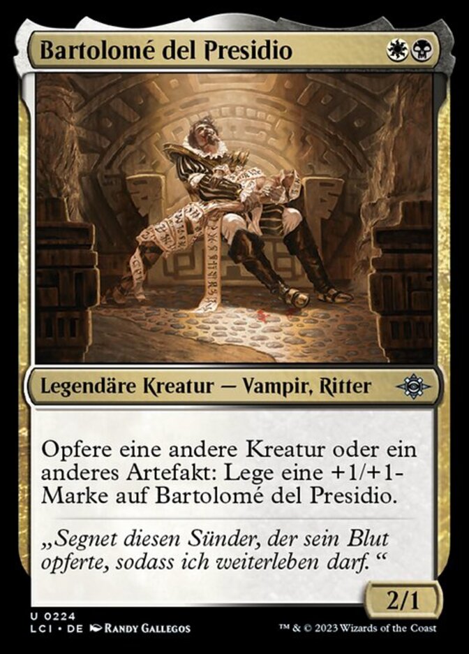| Rules | Sacrifice another creature or artifact: Put a +1/+1 counter on Bartolomé del Presidio. |