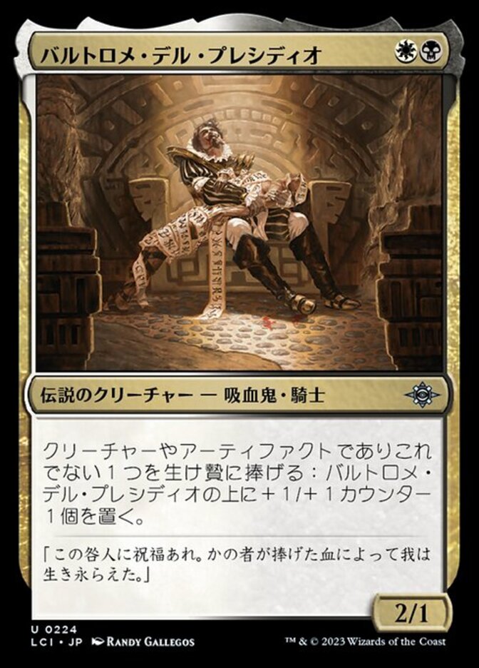 | Rules | Sacrifice another creature or artifact: Put a +1/+1 counter on Bartolomé del Presidio. |
