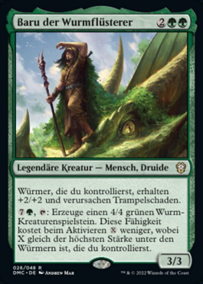 | Rules | Wurms you control get +2/+2 and have trample. , : Create a 4/4 green Wurm creature token. This ability costs less to activate, where X is the greatest power among Wurms you control. |