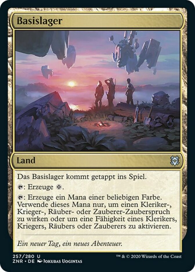 | Rules | Base Camp enters the battlefield tapped. : Add . : Add one mana of any color. Spend this mana only to cast a Cleric, Rogue, Warrior, or Wizard spell or to activate an ability of a Cleric, Rogue, Warrior, or Wizard. |